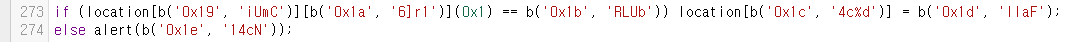 debug me라는 문구가 팝업창으로 떴으니 코드에서 팝업창을 띄우게 하기 위해 사용하는 alert() 부분을 찾아준다.